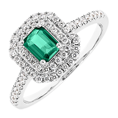« L'ATELIER » NR. 1064268Ring Witgoud 9 karaat - Synthetische smaragd Rechthoekig 0.5 Karaat - Halo Laboratorium diamant - Setting Laboratorium diamant