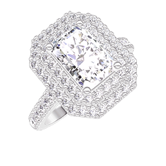 Ring Witgoud 9 karaat - Laboratorium diamant Rechthoekig 1 Karaat - Halo Laboratorium diamant - Setting Laboratorium diamant