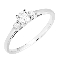 Ring Witgoud 9 karaat - Diamant rond 0.3 Karaat - Aanleunende edelstenen Diamant