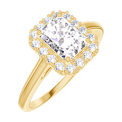 Ring Geelgoud 18 karaat - Diamant Rechthoekig 0.5 Karaat - Halo Diamant