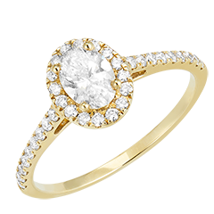 Ring Geelgoud 9 karaat - Diamant Ovaal 0.5 Karaat - Halo Diamant - Setting Diamant
