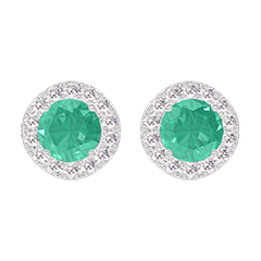 « L'ATELIER » NR. 201351Oorbellen Witgoud 18 karaat - Smaragd rond 0.3 Karaat (2 X) - Halo Diamant 5