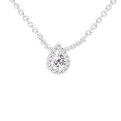 Halsketting Witgoud 18 karaat - Laboratorium diamant Peer 0.3 Karaat - Halo Laboratorium diamant - Ketting Gourmet