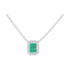 « L'ATELIER » NR. 202288Halsketting Witgoud 9 karaat - Smaragd Rechthoekig 0.3 Karaat - Halo Diamant - Ketting Venetiaans
