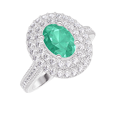 « L'ATELIER » NR. 406103Ring Witgoud 18 karaat - Smaragd Ovaal 0.5 Karaat - Halo Diamant - Setting Diamant