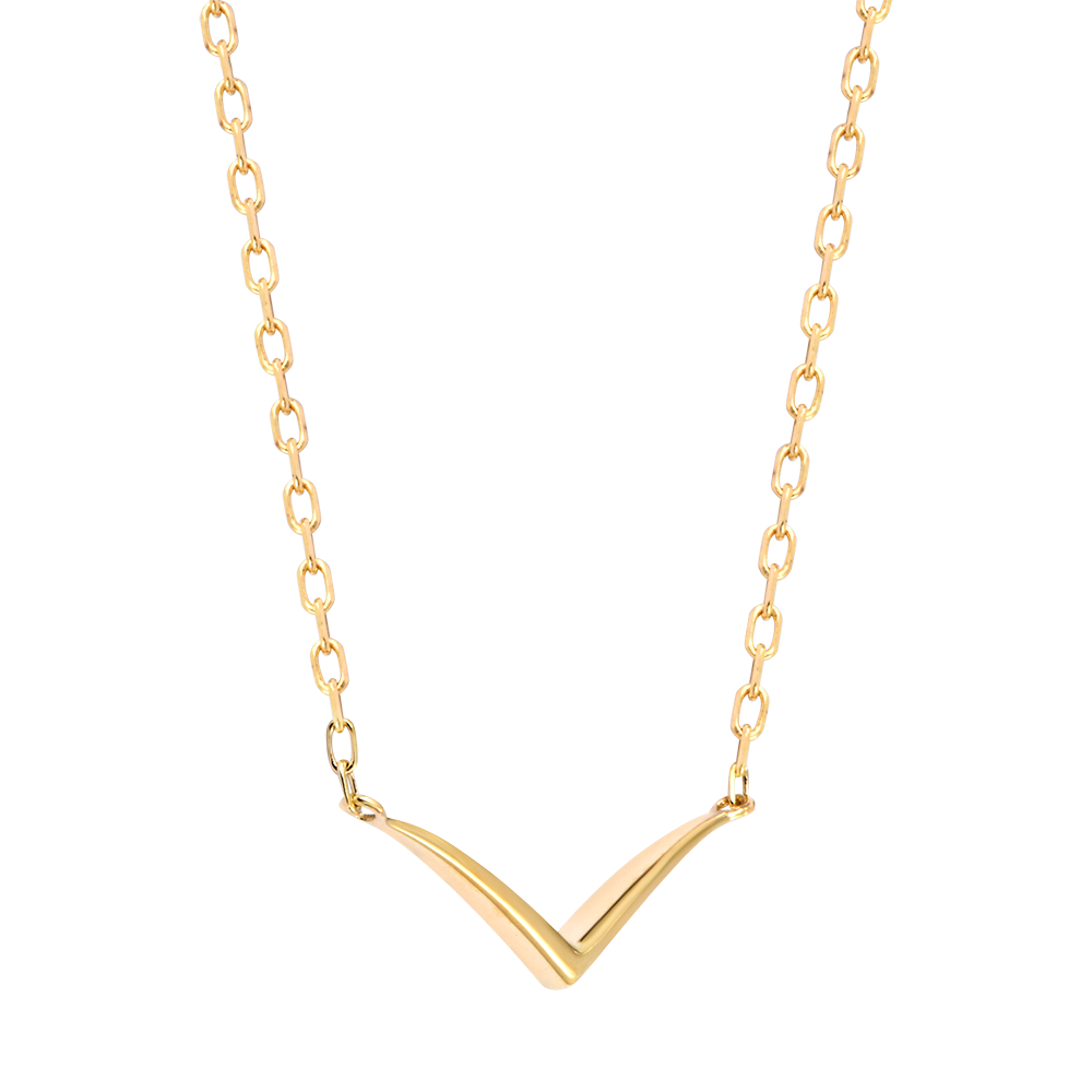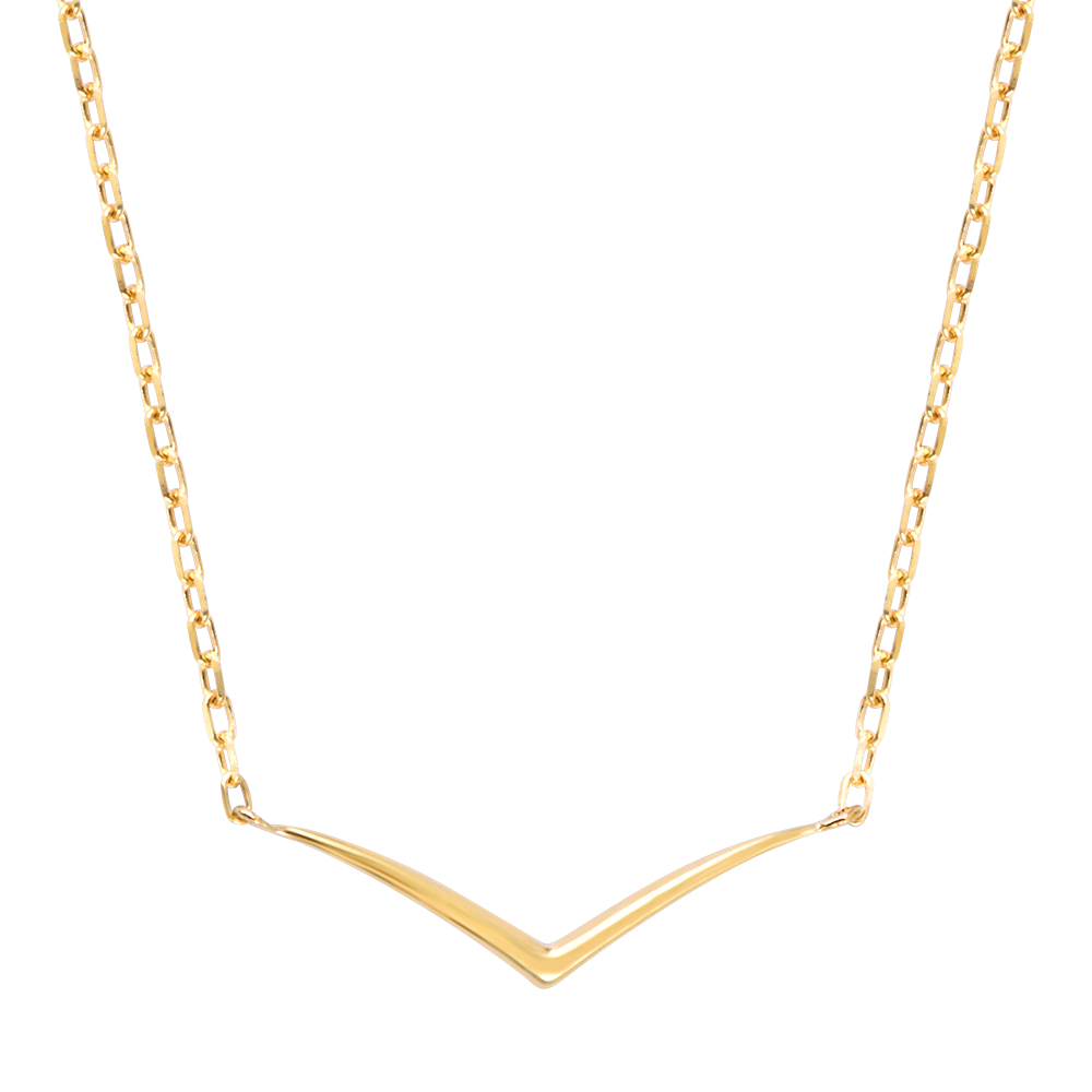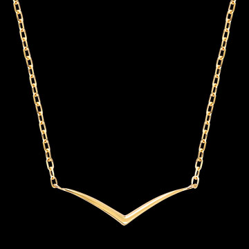 De Frisheid-collectie is geïnspireerd op de vloeiende vormen van de natuur, met een delicaat ontwerp dat de hals zacht accentueert. Zonder stenen ligt de nadruk op de warme glans van het goud.