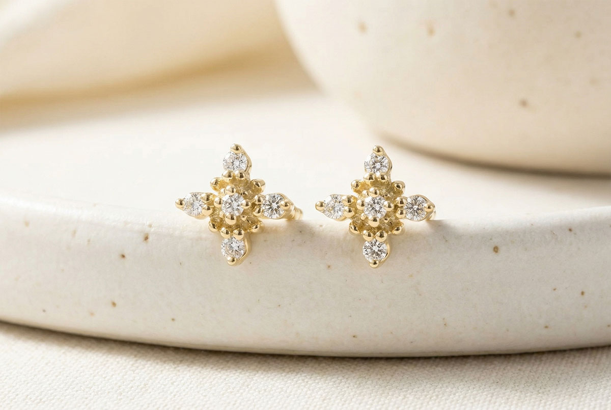 Een fonkelend rozet met tien zorgvuldig gezette diamanten.Stralende oorknopjes die klassieke verfijning combineren met een subtiele glans.
