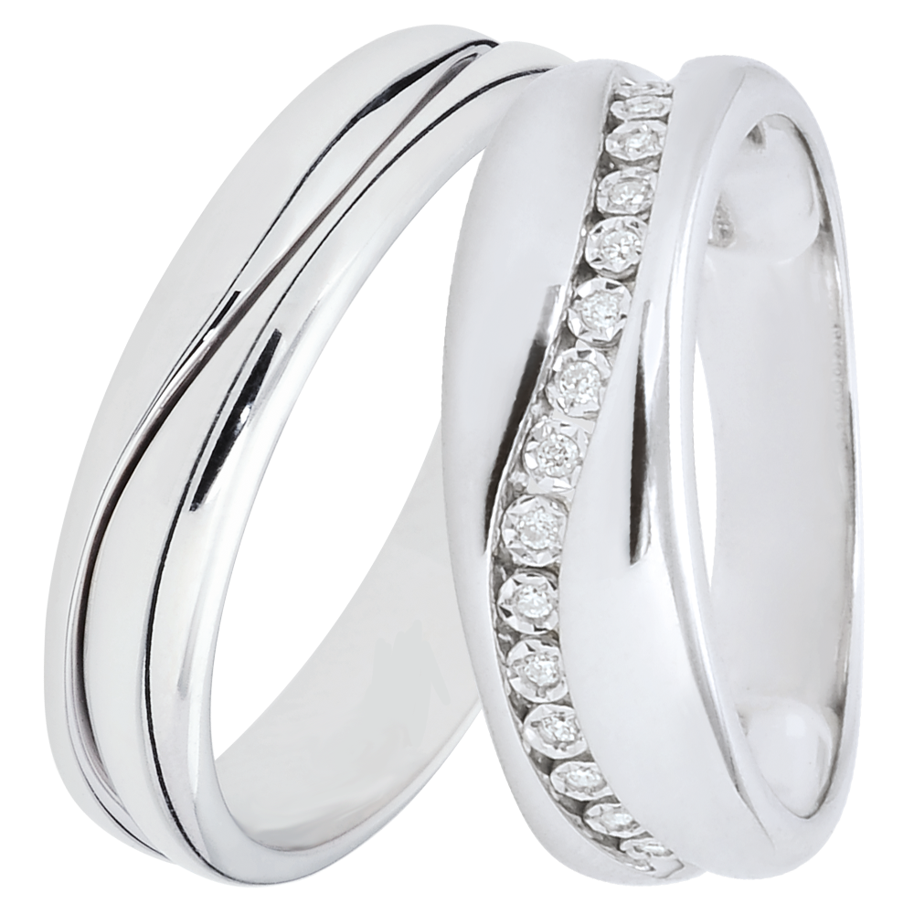 Amour trouwringen-duo – Witgoud & diamanten – 9 karaat