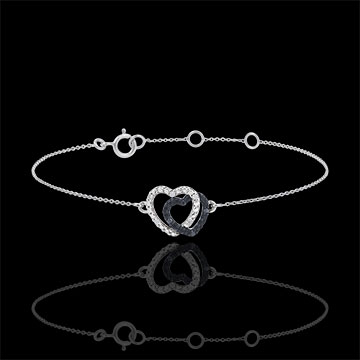 Armband witgoud en witte en zwarte diamanten - Geweven Harten