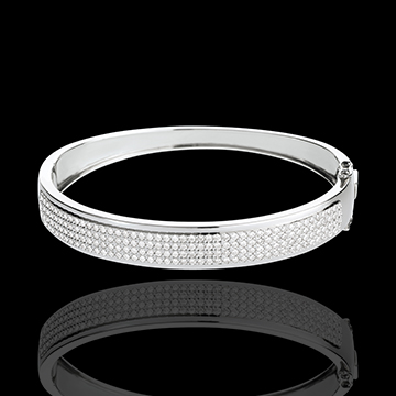 Een pavézetting in 4 rijen van diamanten op witgoud sieren uw arm voor een eenvoudige en klassieke elegantie.