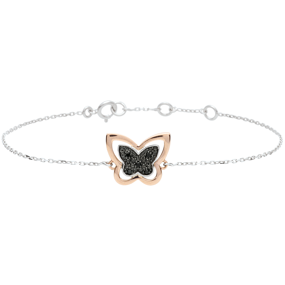 DAGDROMEN NR. 3Armband Vlinder - Witgoud en Roségoud 18 karaat - Zwarte diamant ID : 2538 5