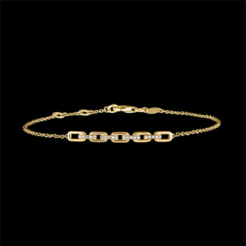 Vijf royale Cubaanse schakels bezet met diamanten contrasteren een delicate ketting voor een klassieke geelgouden armband die opnieuw is bezocht. Lengte verstelbaar: 18 cm, 17 cm, 16 cm.