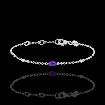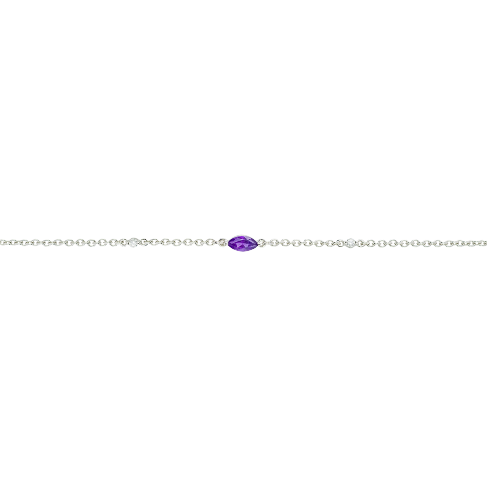 De kostbare pupil wordt gesymboliseerd door een spoelvormige amethist die in het midden van deze fijne gouden ketting troont. Ze is omringd door twee sublieme diamanten die net twee, voor eeuwig gestolde, tranen lijken. Een sprankelende en waardevolle armband om bij al uw outfits te dragen.