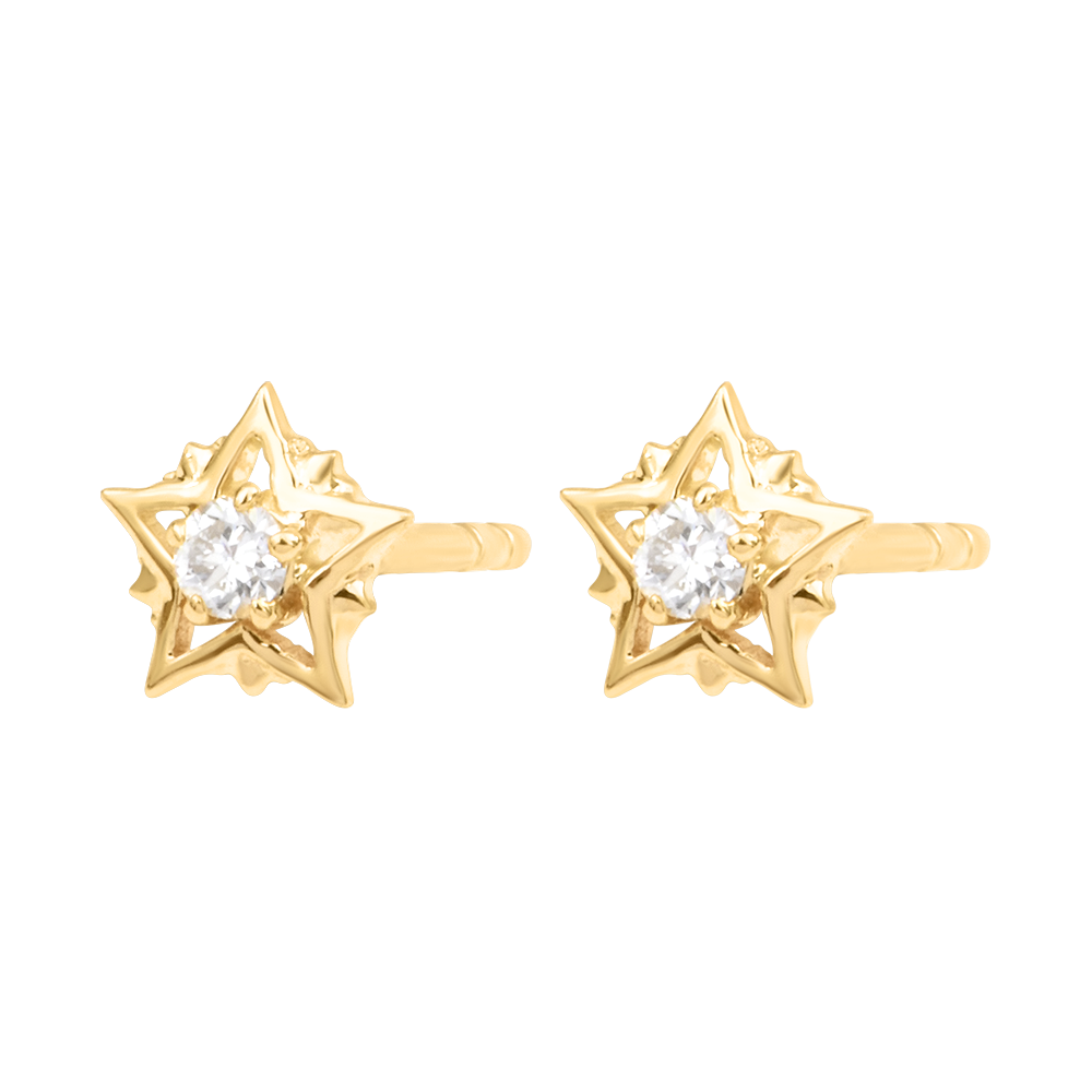 LENTEKRIEBELS NR. 110Stud oorbellen Ster - Geelgoud 9 karaat - Laboratorium diamant ID : 3979