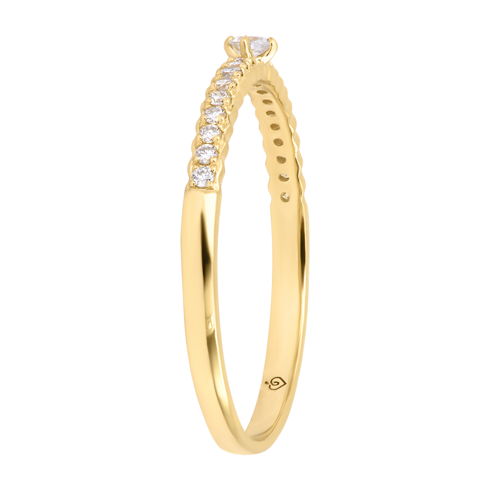 LENTEKRIEBELS NR. 112Verlovingsringen - Geelgoud 9 karaat - Laboratorium diamant ID : 3920