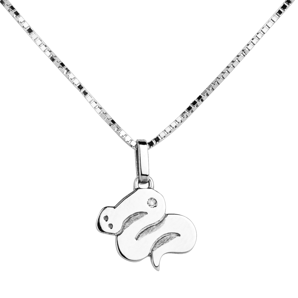 Het lichaam van de slang is versierd met een witte diamant van 0,05 karaat, die een subtiele en verfijnde glans geeft.