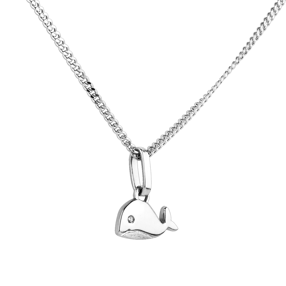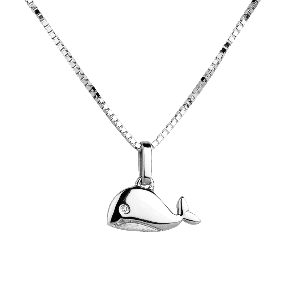 Deze hanger toont een vrolijk, rond babywalvisje dat je op al je avonturen vergezelt. Gemaakt van 18 karaat witgoud, met een delicate diamant als oog.