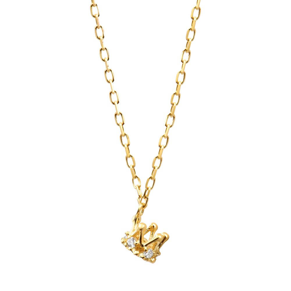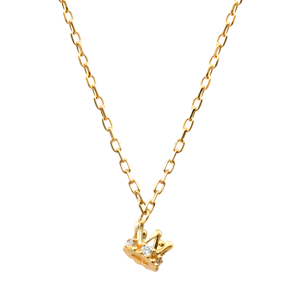 Deze fijne ketting van 9-karaats geelgoud heeft een klein kroonhanger bezet met vijf synthetische witte diamanten met een totaalgewicht van 0,05 karaat.