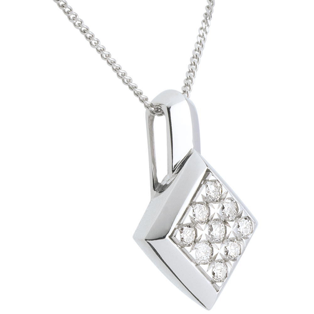 Balans en evenwicht van een diamanten dambord voor een halsketting van perfecte architectuur.
