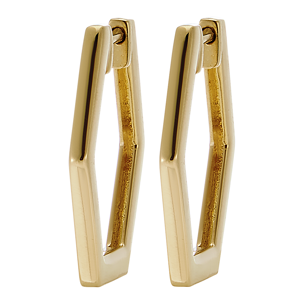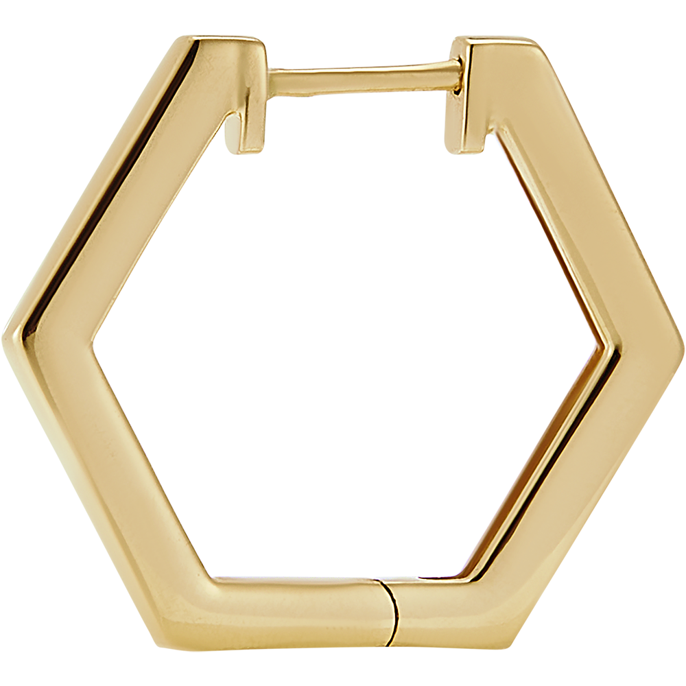 Deze minimalistische creolen in geelgoud zijn geïnspireerd door de hexagonale vorm van de honingraatcellen. Het strakke en moderne ontwerp maakt het een tijdloos juweel.