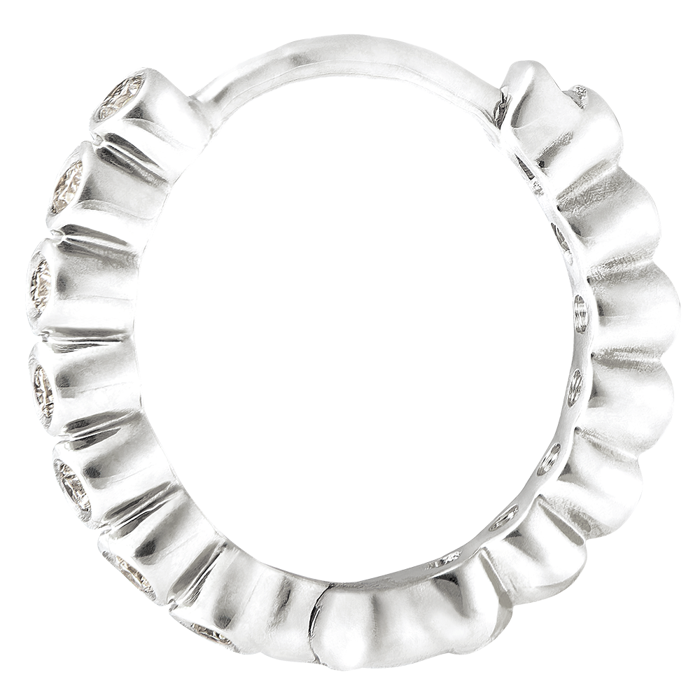 Een cirkel van witgouden parels bezet met diamanten. Een paar vrouwelijke oorbellen die zowel klassiek als origineel zijn.14 diamanten: 0.07 karaat.