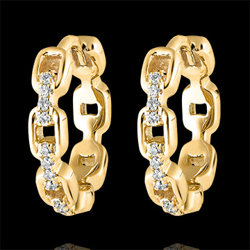 Een paar geelgouden oorbellen met royale Cubaanse schakels bezet met diamanten.