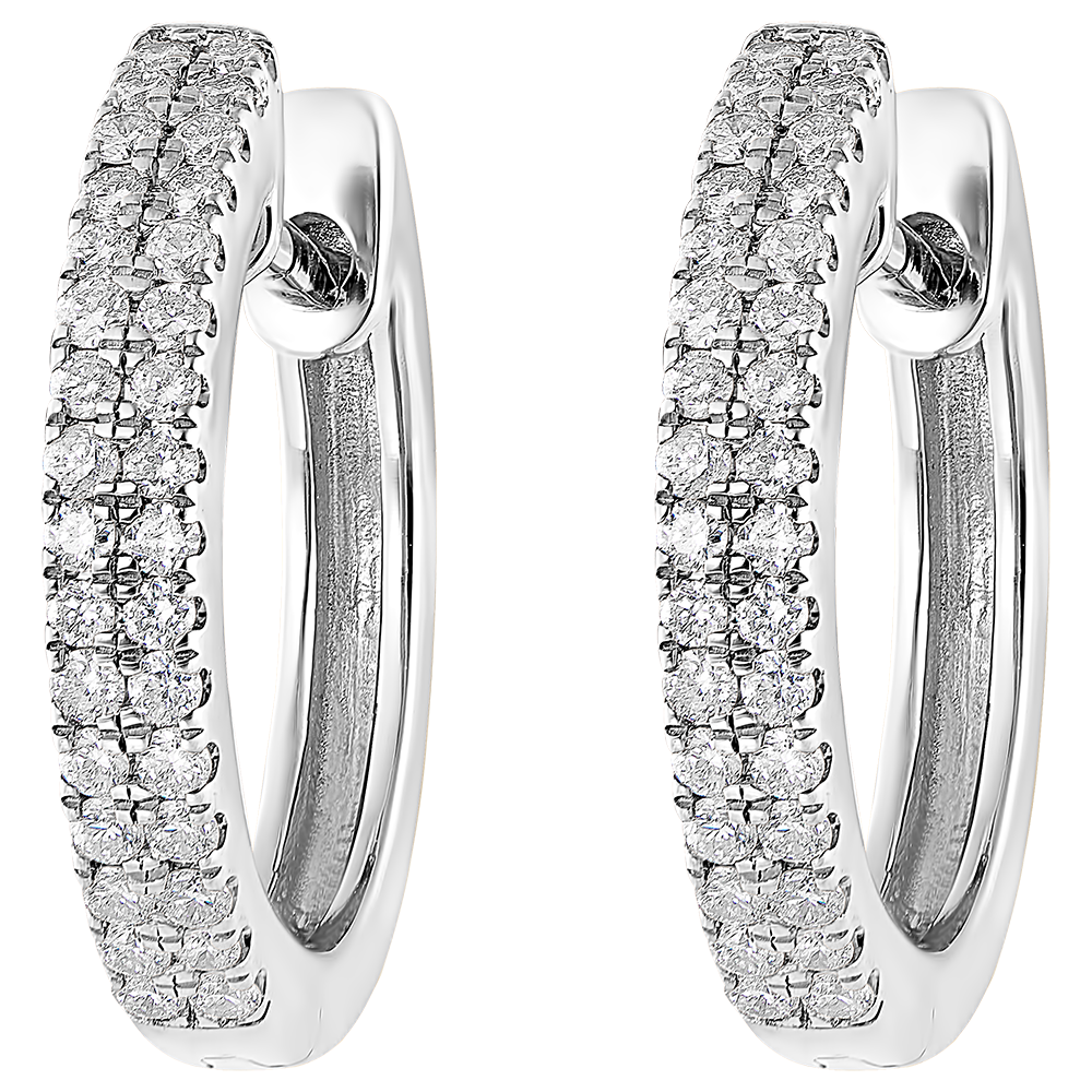 Een paar semi-pavé witgouden oorbellen met een dubbele rij diamanten voor lichtheid en elegantie.