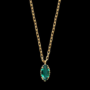 Een stralende marquise-geslepen smaragd schittert in het midden van een verfijnd bewerkte hanger.Een elegant en poëtisch sieraad dat de frisheid van een lenteblad oproept.