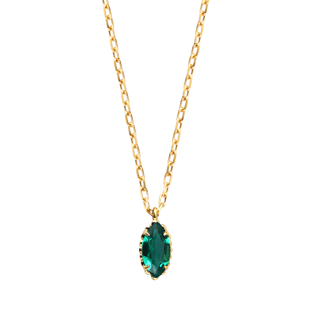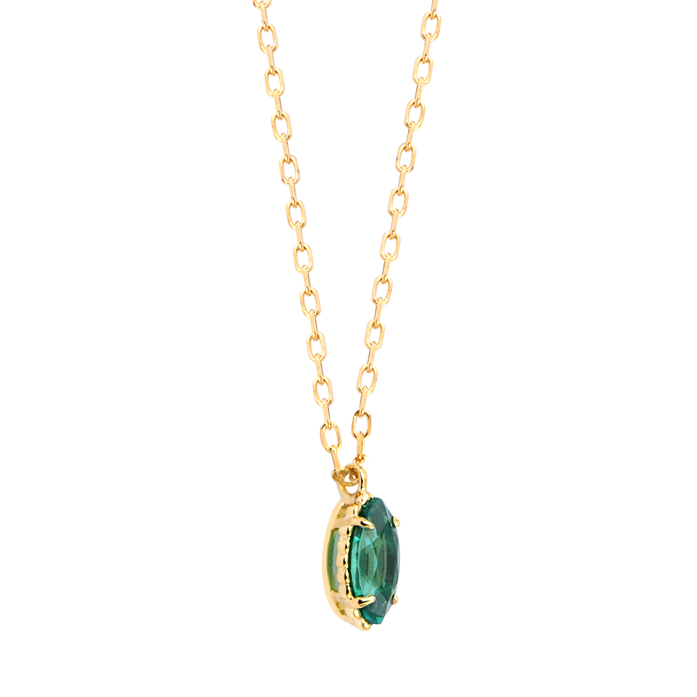 PARADIJSVOGEL NR. 31Halsketting Blaadjes - Geelgoud 9 karaat - Synthetische smaragd ID : 3740