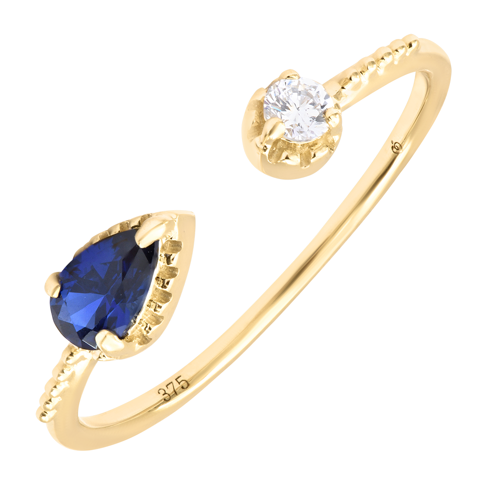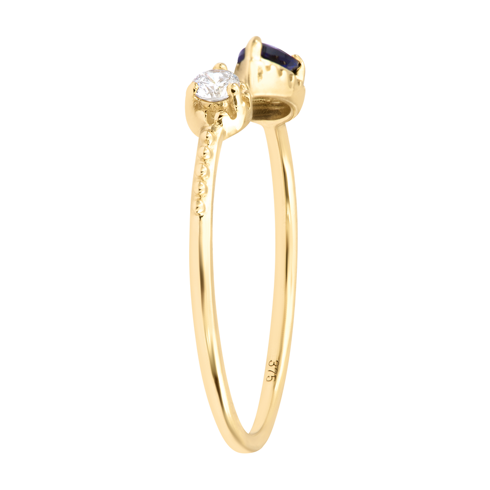 Echo Ring – 9 karaat geelgoud, synthetische saffier en diamant