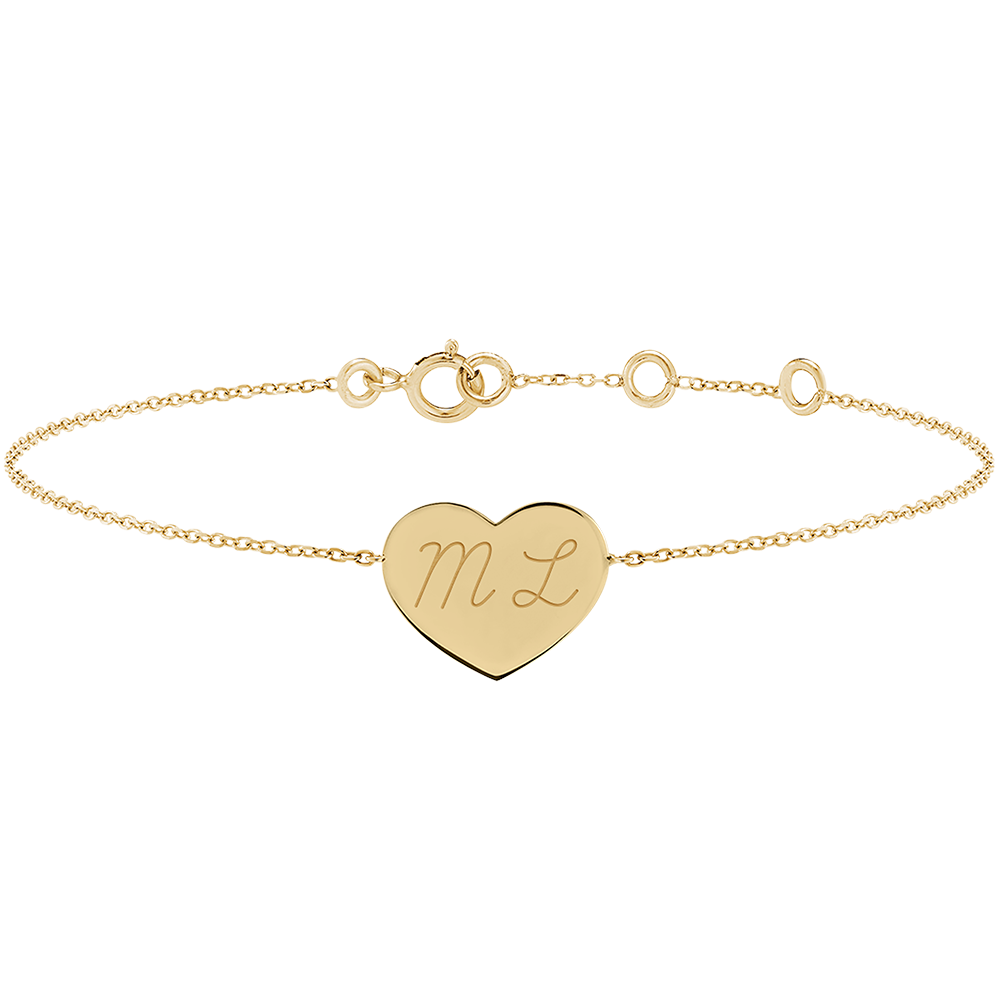 Deze minimalistische armband van 9K geelgoud heeft een fijn gegraveerde hartvormige medaille.