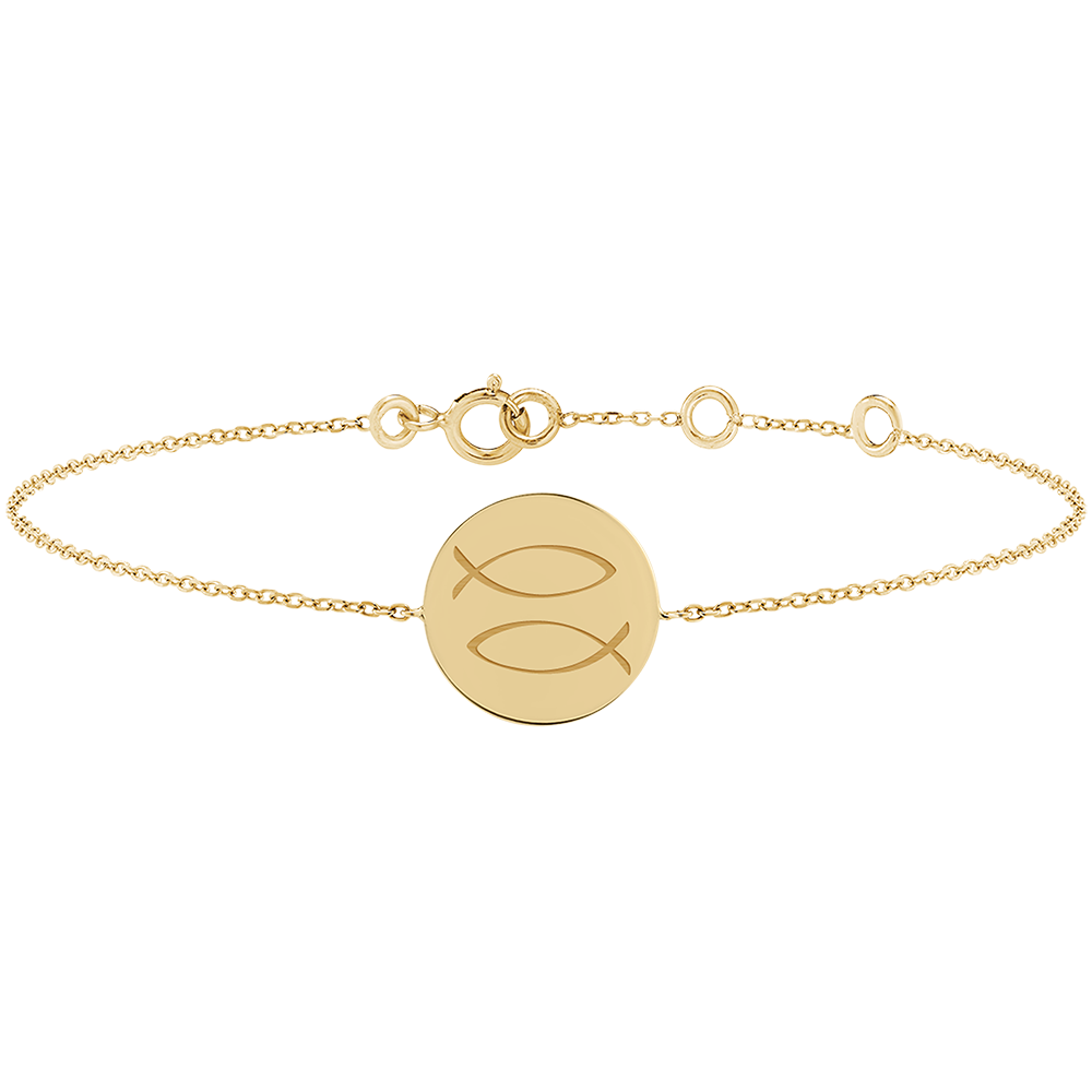 ZODIAC YOURS NR. 2Rond gegraveerde medaillon armband - Pisces - Geelgoud 9 karaat ID : 4868 5