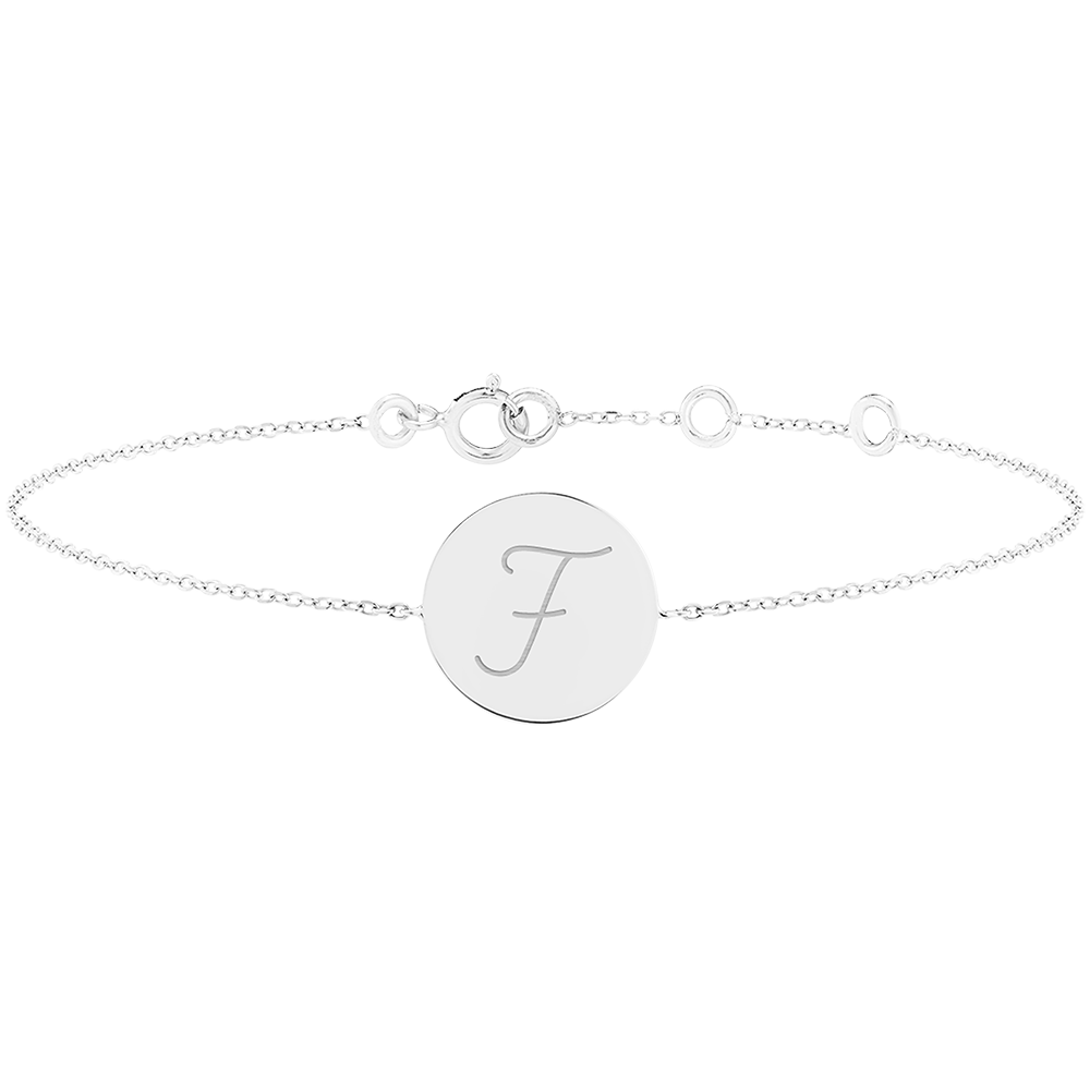 ABC YOURS NR. 2Rond gegraveerde medaillon armband - Witgoud 9 karaat  ID : 4933