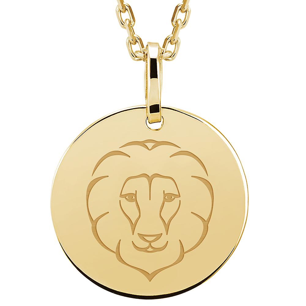 ZODIAC YOURS Nº16Rond medaillon gegraveerd - Leo - Geelgoud 9 karaat ID : 4757 4.7