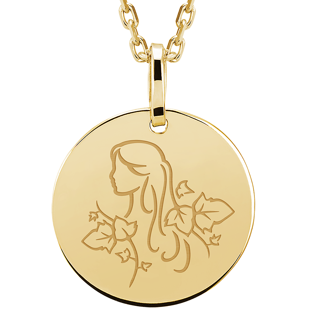 ZODIAC YOURS NR. 16Rond medaillon gegraveerd - Virgo - Geelgoud 9 karaat ID : 4805 4.7