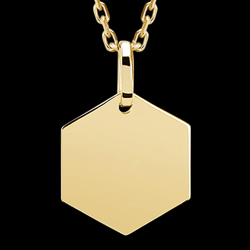 Deze medaille hanger van 18 karaat geelgoud heeft een elegant zeshoekig ontwerp en kan gepersonaliseerd worden met een selectie gravures van Edenly. Een tijdloos en verfijnd sieraad.