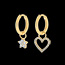 Een enkele geelgouden creole met een stervormige bedel en geplaveid met fonkelende diamanten. Afmetingen bedelring: 3.1 mm.