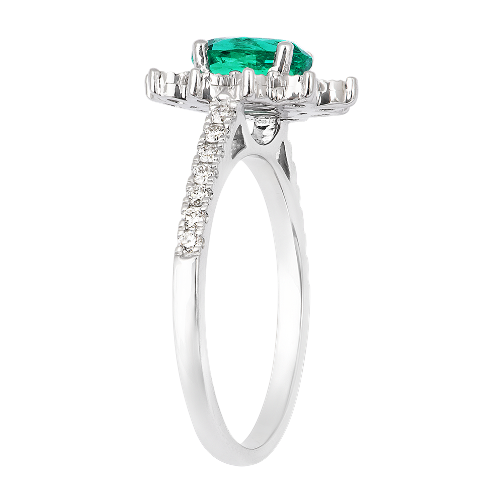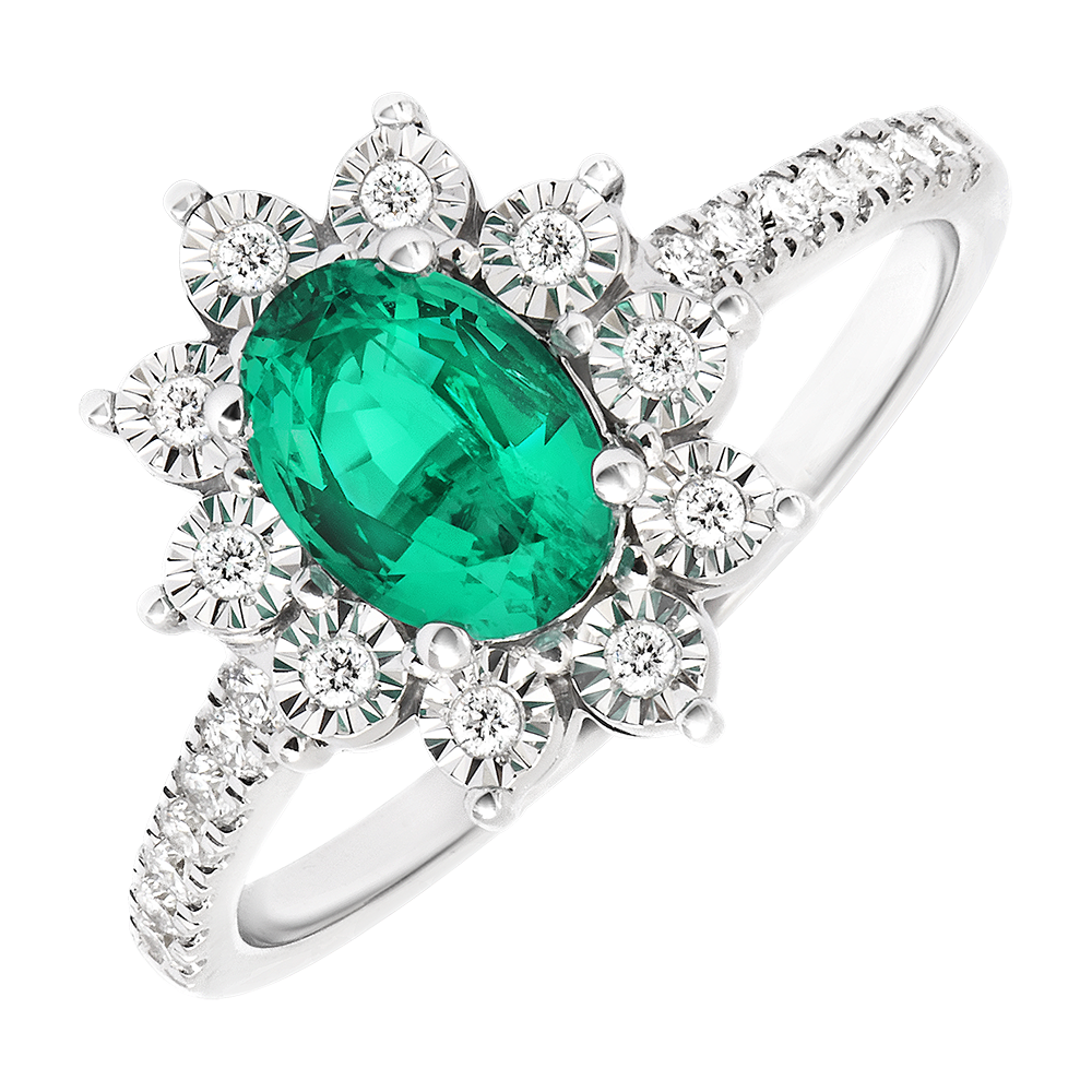 De "Daisy" is een eigentijdse interpretatie van onze iconische "Marguerite" ring. Met zijn verfijnde zetting en een centrale smaragd van 0,75 karaat die natuurlijk het licht met elegantie vangt, combineert hij fijnheid en elegantie. Deze ring vertelt het verhaal van een tijdloze bloem die zich steeds opnieuw uitvindt. Symbool van puurheid en vernieuwing, vangt hij de essentie van kostbare momenten. Perfect voor persoonlijk genot of als cadeau, is deze ring een ideale keuze voor verlovingen, die de belofte van eeuwige schoonheid belichaamt. Voor een extra vleugje karakter of een kleuraccent is hij ook verkrijgbaar met saffier of robijn, wat verschillende tinten van liefde en persoonlijkheid weerspiegelt.