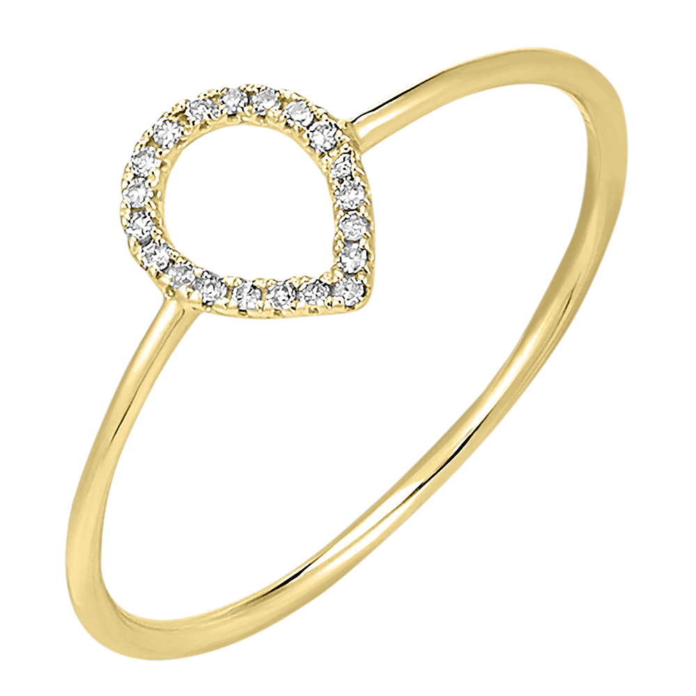Een druppel delicaat bezet met diamanten op een geelgouden ring, voor een puur model, dicht bij de elementen en emoties.