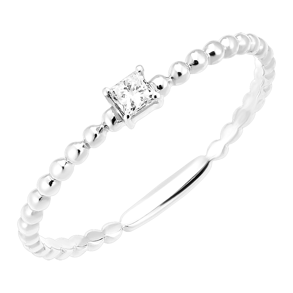 De Bubble Princess Solitaire heeft een witgouden ring met ruches bezet met delicate prinsesgeslepen diamanten voor een moderne elegantie.
