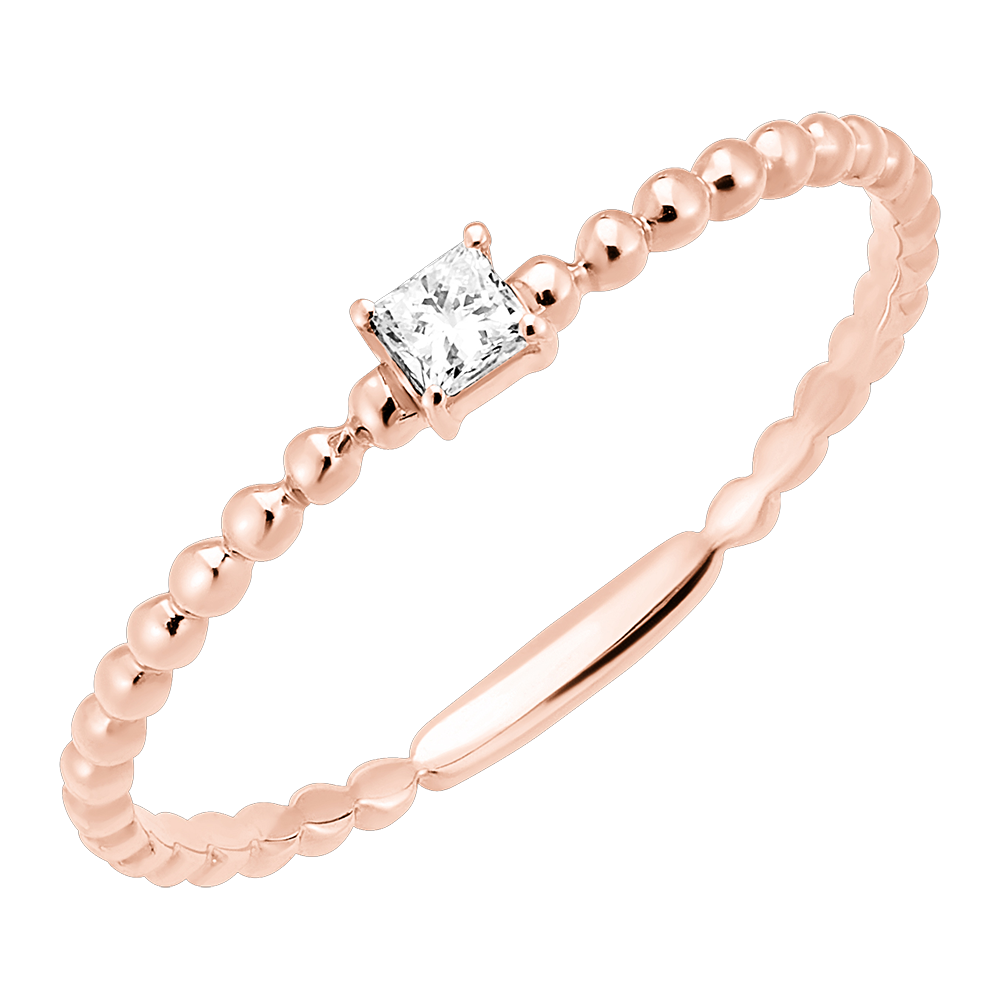 Frisheid Ring - Solitaire Bubble Prinses - 9 karaat roségoud en diamant