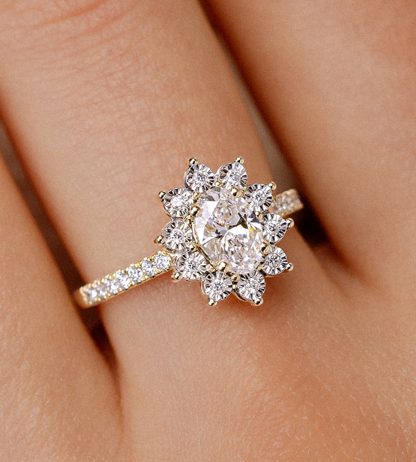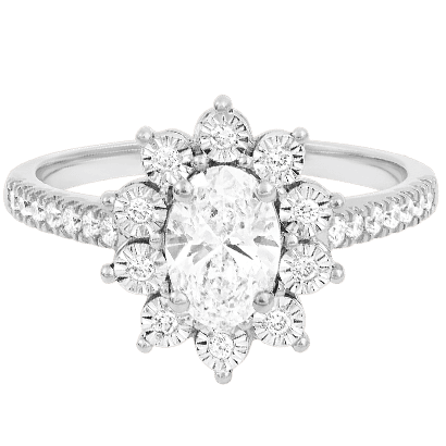 MEER INFORMATIEEen cluster is een samenstelling van kleine diamanten die samengebracht worden om het effect van een grotere steen te creëren, met vermenigvuldigde fonkeling en een uitstekende prijs-kwaliteitverhouding.