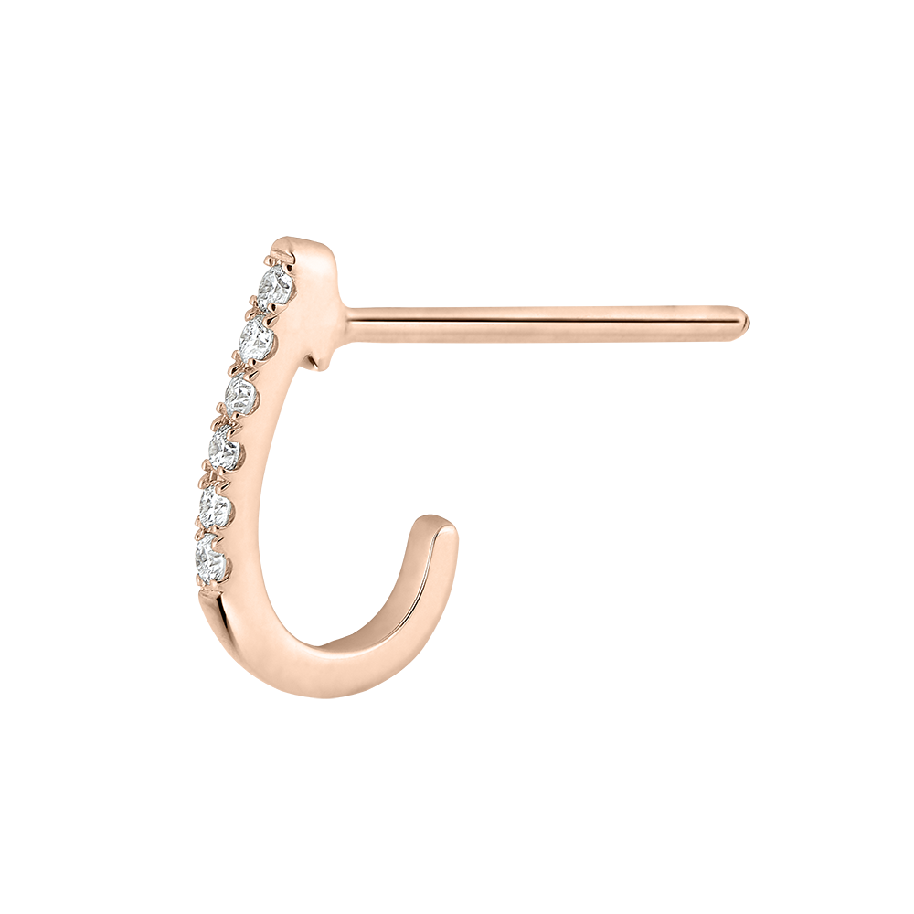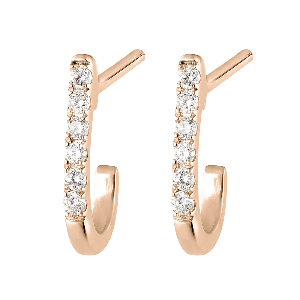 Fijne halve oorbellen van roségoud waarvan de delicate pavé diamanten de oren laat schitteren.