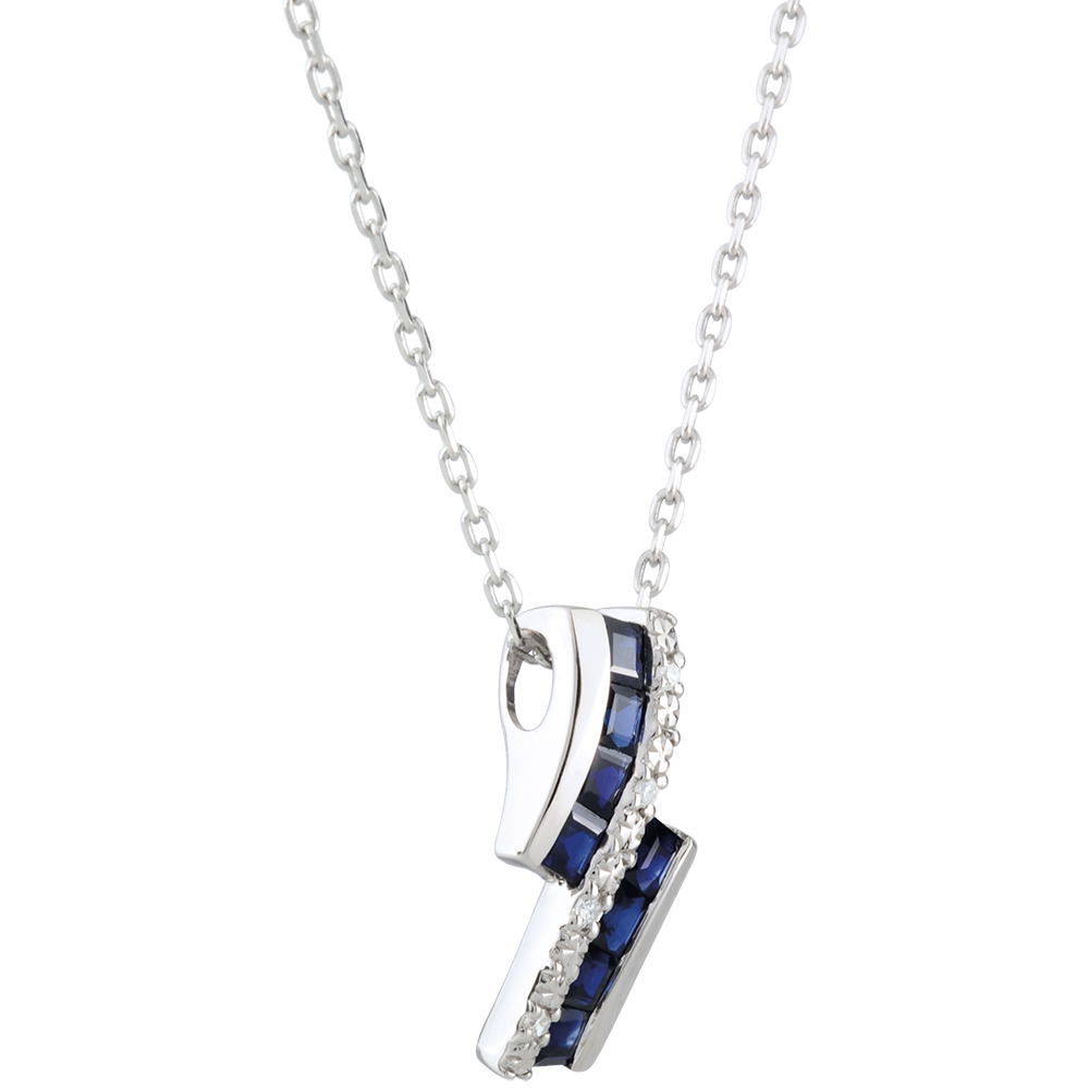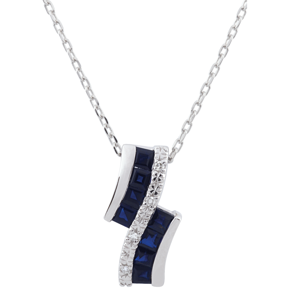 Een ketting met vrouwelijke en elegante bogen gewijd aan een Saffier en diamant met verfijning.