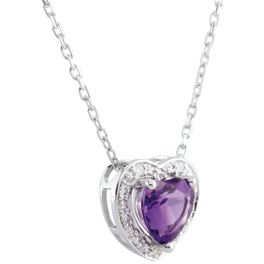 Halsketting Betoverd Hart - amethist - 9 karaat witgoud