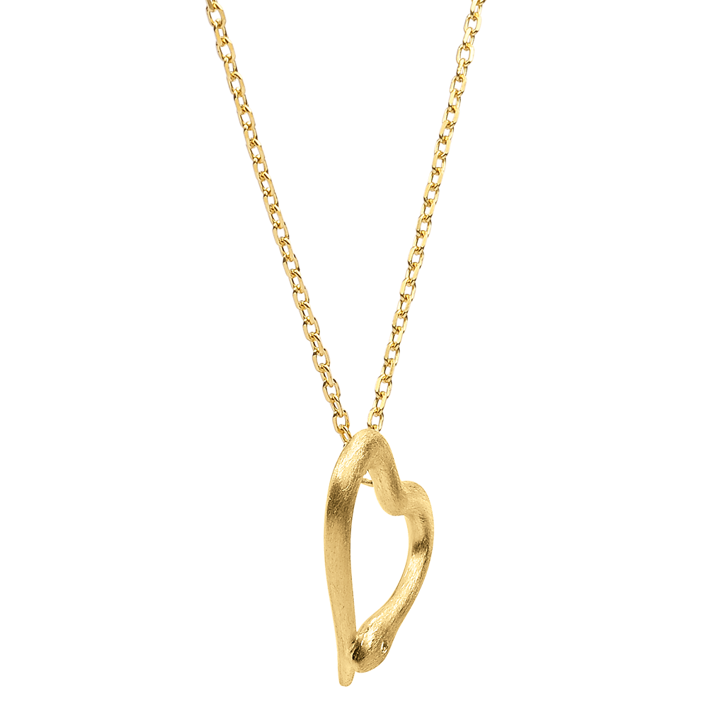 Een slang versiert met geborsteld geelgoud wikkelt zich rond een fijne vrouwelijke ketting en vormt een hart.