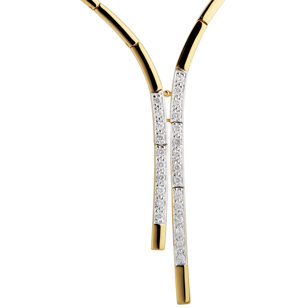 Als een kostbaar lint rond de hals, deze geelgouden ketting met diamanten pavézetting op witgoud kleed je op een heel elegante manier.
