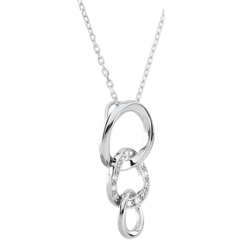 Een trilogie van cirkels spinnen in een oneindige beweging met in het midden een diamanten pavézetting.