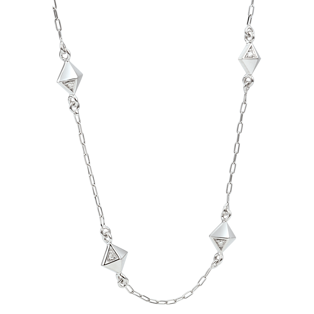 Geïnspireerd door de vorm van een ruwe diamant, deze kostbare piramides, waarvan een facet een diamant draagt, zijn stijlvol en modern.