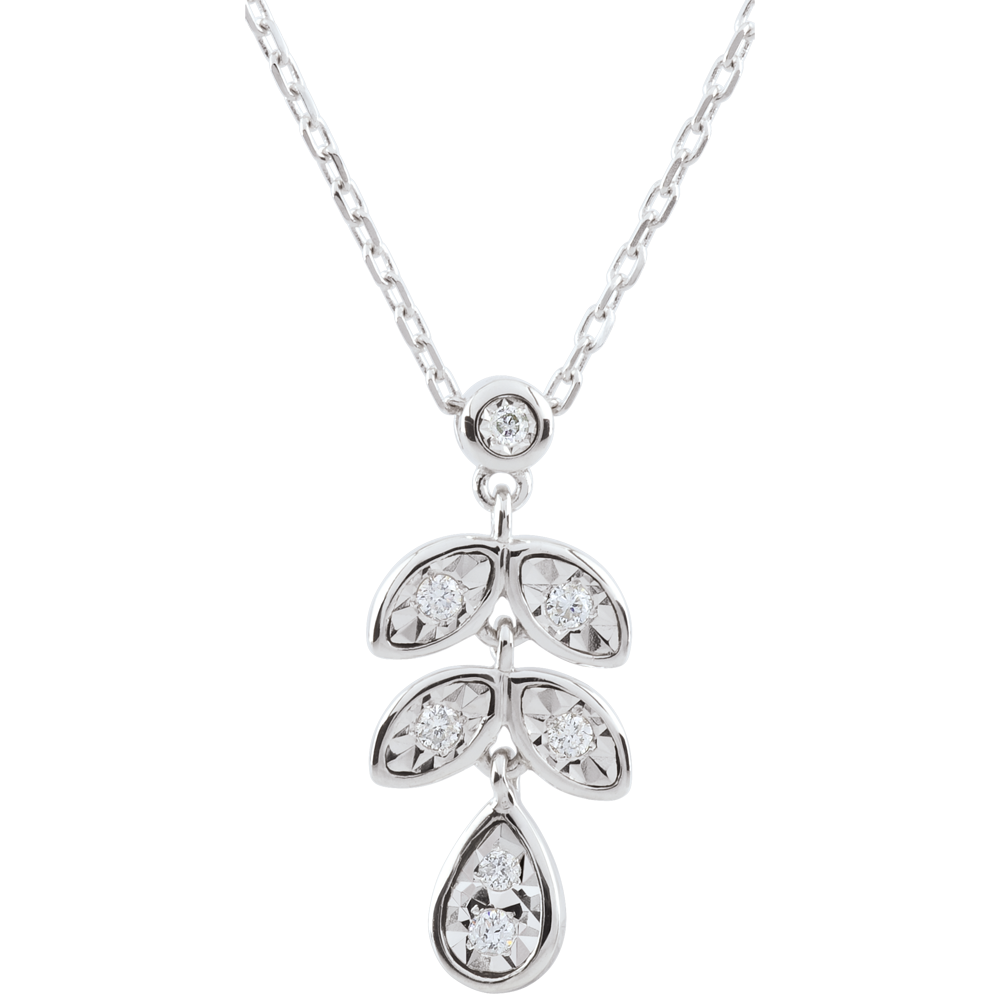 MAGISCHE TUIN NR. 2Halsketting Blaadjes - Witgoud 9 karaat - Diamant ID : 2420